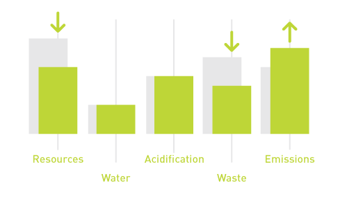 It is also important to assess the benefits of the new design and compare them to the benefits of other designs under consideration. Unless a very comprehensive functional unit was used, it’s likely that LCA results will not give information to compare the benefits of different design options. Furthermore, cost considerations, unwanted social impacts, and certain environmental indicators may not be included in LCA results. Try to think as holistically as possible when evaluating different design options.